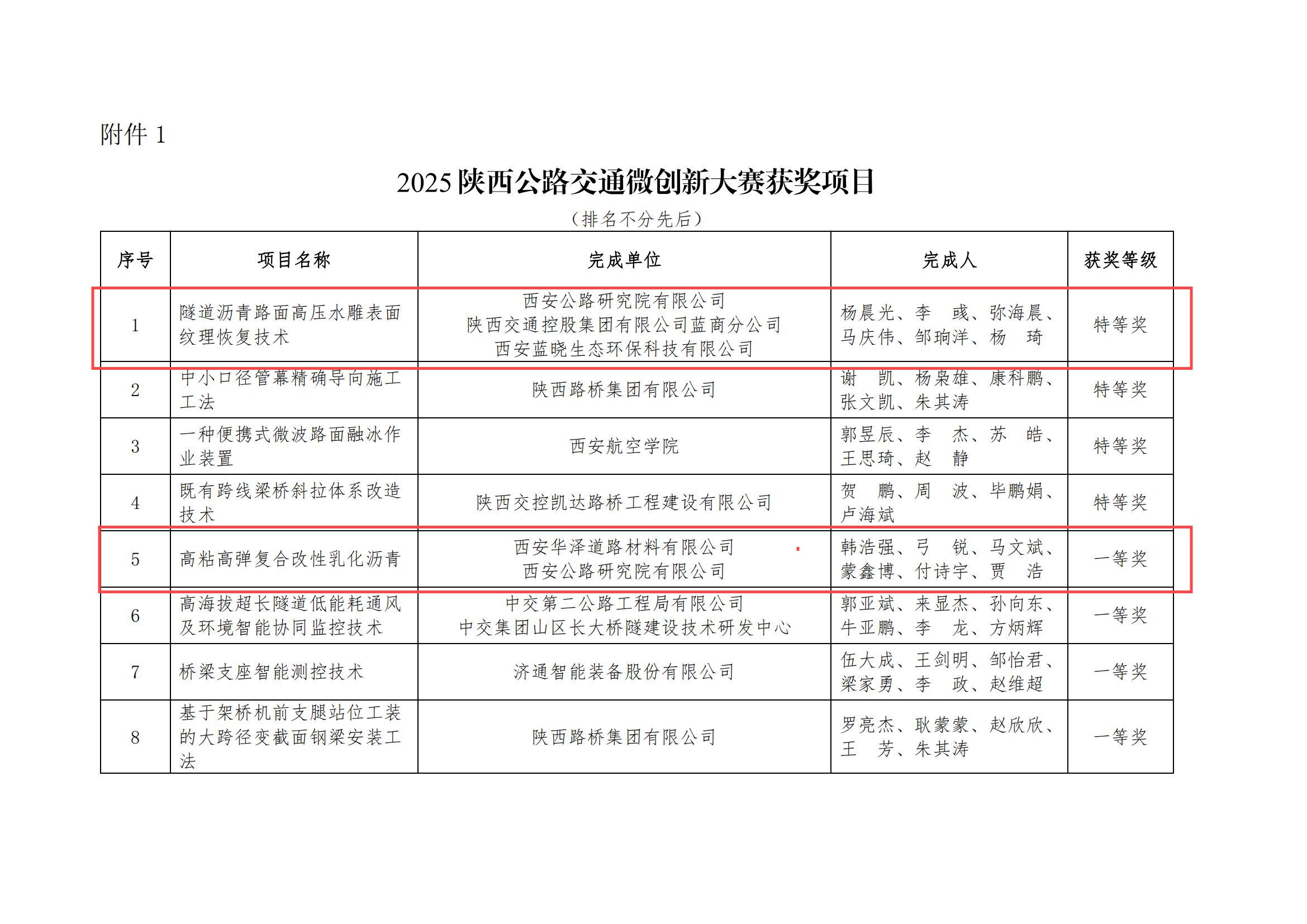 10月9日,由陕西省公路学会与陕西省交通运输工会委员会联合主办的“2025陕西公路交通微创新大赛”评选结果正式揭晓。激烈竞争中,西安公路研究院申报的11个项目全部获奖,涵盖特等奖1项、一等奖1项、二等奖3项、优秀奖6项,同时获评“优秀组织单位”,充分展现了西公院在公路交通全产业链中的技术引领作用。