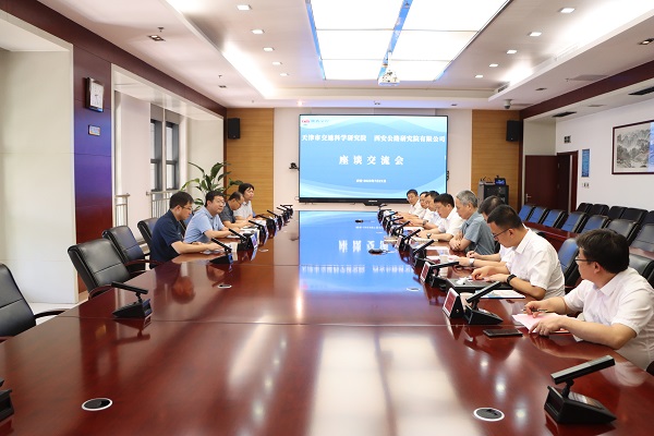 天津市交通科学研究院检测中心李永强主任、王星部长、天津市建达科技有限公司赵向樱董事长;公路研究院总工程师、副总经理梁武星,经营开发中心、养护技术研究院、项目管理中心、智能研究所、陕西西公院工程试验检测有限公司、陕西省交通环境监测中心站负责人参加了座谈。