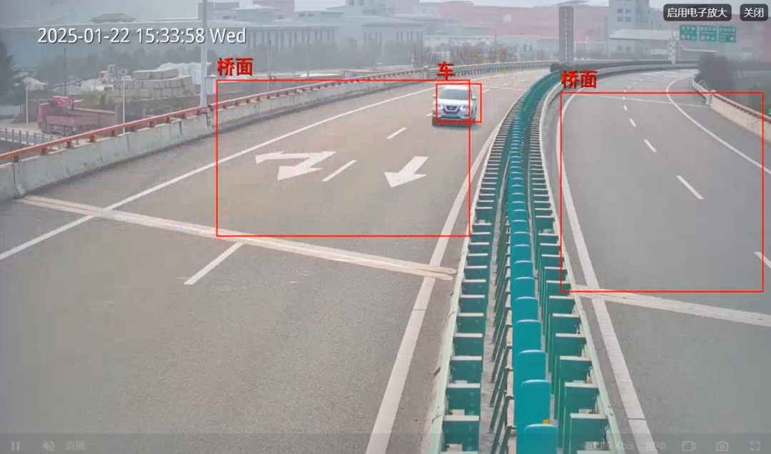 风险识别维度拓展:从结构隐患到交通异态的全覆盖。基于前端AI识别与边缘检测算法,系统构建了多层级风险感知网络——结构安全层面:实时解析监控视频中的细微变化,精准捕捉道路塌陷、桥梁垮塌、滑坡隐患等结构性风险;目标监测层面:同步实现对行人、车辆、路面设施(含标志牌)、突发塌方等关键目标的动态检测;交通事件层面:支持对异常停车、逆行、道路拥堵、低能见度等特殊交通状态的快速识别。通过上述功能集成,系统成功推动监测模式从“被动响应”向“主动防护”跨越,能够在风险萌芽阶段即触发预警机制。
